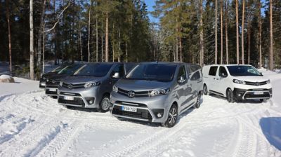 Kokeilimme kotimaan mediatilaisuudessa Proace 4x4 -mallin etenemiskykyä maastoajolenkillä, joka kesäiseen aikaan on Hiluxillekin erittäin haastava. Talvi ja lumi tasoittivat kuitenkin pahimmat paikat, ja vaikkei nelivetoinen pakettiauto koskaan maastoauto olekaan, ylitti Proace 4x4 odotuksemme kirkkaasti. Takaveto kytkeytyy etuvedon rinnalle todella nopeasti, ja nousimme ylös sellaisia mäkiä, jotka olisivat millä tahansa etu- tai takavetoisilla malleilla ajettaessa jalkauttaneet kuljettajan ja matkustajan jatkamaan matkaansa apostolinkyydillä.