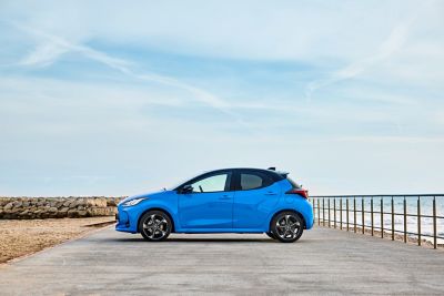 B-pilarista nouseva kylkilinja, haineväantenni ja uhmakkaat pokkaukset antavat uudelle Toyota Yarisille modernin hillityn profiilin. -