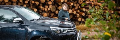 Tämä on toinen Hiluxini. Kun vaihdoin keväällä autoa, halusin vanhan kaksipaikkaisen Hilux Extra Cabin tilalle Double Cab -mallin, sillä tarvitsin tilaa ohjaamon takaosaan tavaroitani varten. Työni näkökulmasta tärkeä ominaisuus on katettu ja tilava lava. Koska metsätyömaat sijaitsevat syvällä metsissä, huolto ja pienet korjaukset edellyttävät omavaraisuutta. Erilaiset öljyt, työkalut, vararenkaat ja pienet varaosat kulkevatkin lavalla hyvin, eikä auton tuhannen kilon kantokyky tule ihan äkkiä vastaan.