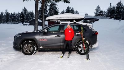 Valokeila taittaa hämärää, kun arvokisahiihtäjä Riitta-Liisa Roponen kääntää liki tuliterän RAV4 Hybrid -katumaasturinsa parkkiin. Hän on palanut edellisenä yönä harjoitusleiriltä Italiasta ja on aika saada keho liikkeeseen.