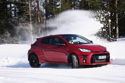 GR Yaris on hauska ajaa jääradalla. Tehoja löytyy riittävästi, aerodynamiikka toimii ja vetosuhteen valintamahdollisuudella höystetty neliveto on hieno, kehuu Kalle Rovanperä.Lääkettä rataurheilun kaipuuseen