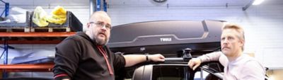 Toyota Wayn tehokaksikko Totte Raivisto ja Pekka Karvinen opastavat kädestä pitäen, kuinka suksiboksi asennetaan auton katolle.Mitä suksiboksin asentamiseen tarvitaan